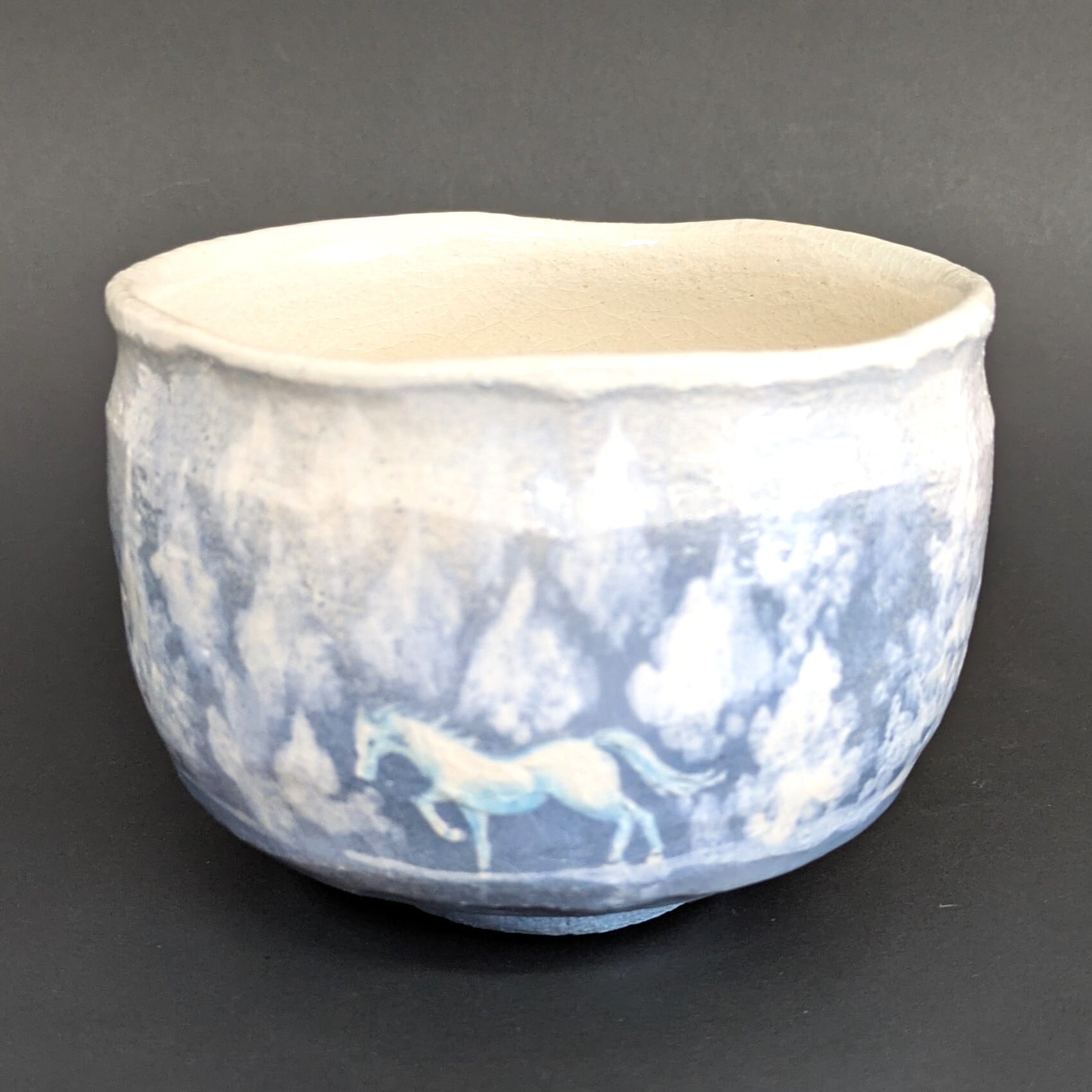 美しい釉薬と独特な形状が特徴的な『楽 湖畔の馬』茶碗です。